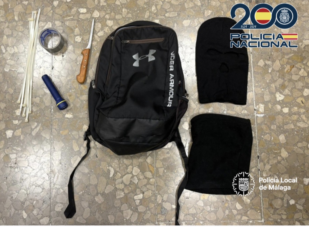 Rápidamente se dirigieron al lugar del aviso tanto indicativos uniformados de la Unidad de Prevención y Reacción UPR- de la Policía Nacional como de la Policía Local, y procedieron, de manera coordinada, a la identificación y detención de esta persona, la cual vestía las mismas zapatillas y una mochila que durante los asaltos. También se localizó el vehículo que utilizaba en sus desplazamientos, interviniéndose diversas prendas empleadas en los robos y un cuchillo de grandes dimensiones. Cabe destacar que, realizadas las comprobaciones, el automóvil había sido sustraído de las instalaciones de una empresa de alquiler.