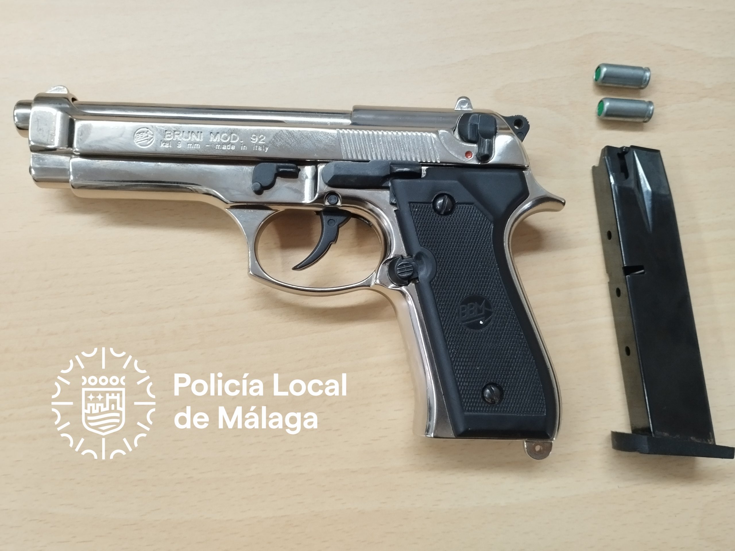 La investigación posterior llevó a los agentes, a través de las pesquisas policiales, a la localización e intervención del arma corta, tratándose de una pistola detonadora de fogueo que replica cada detalle y peso de una de fuego.